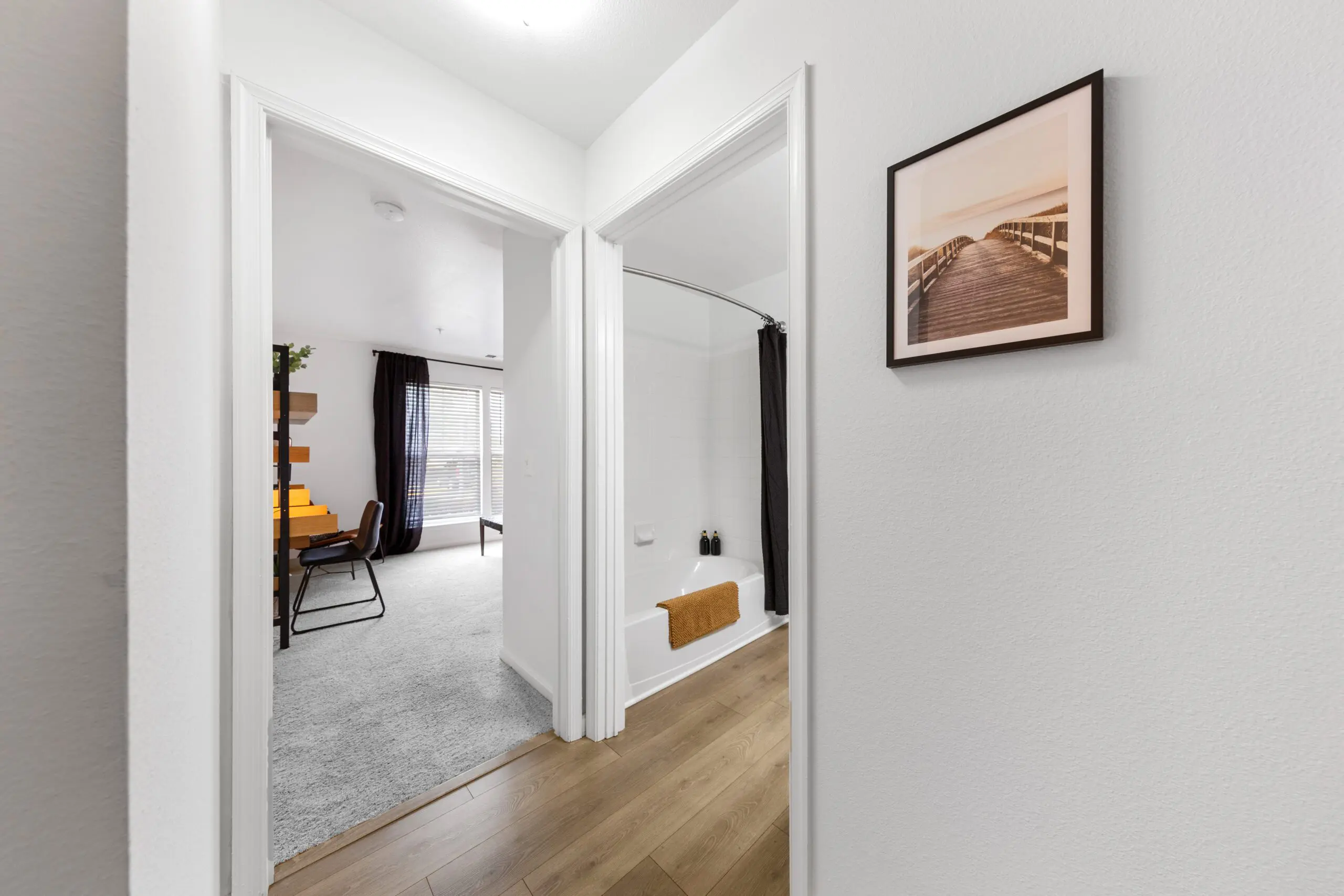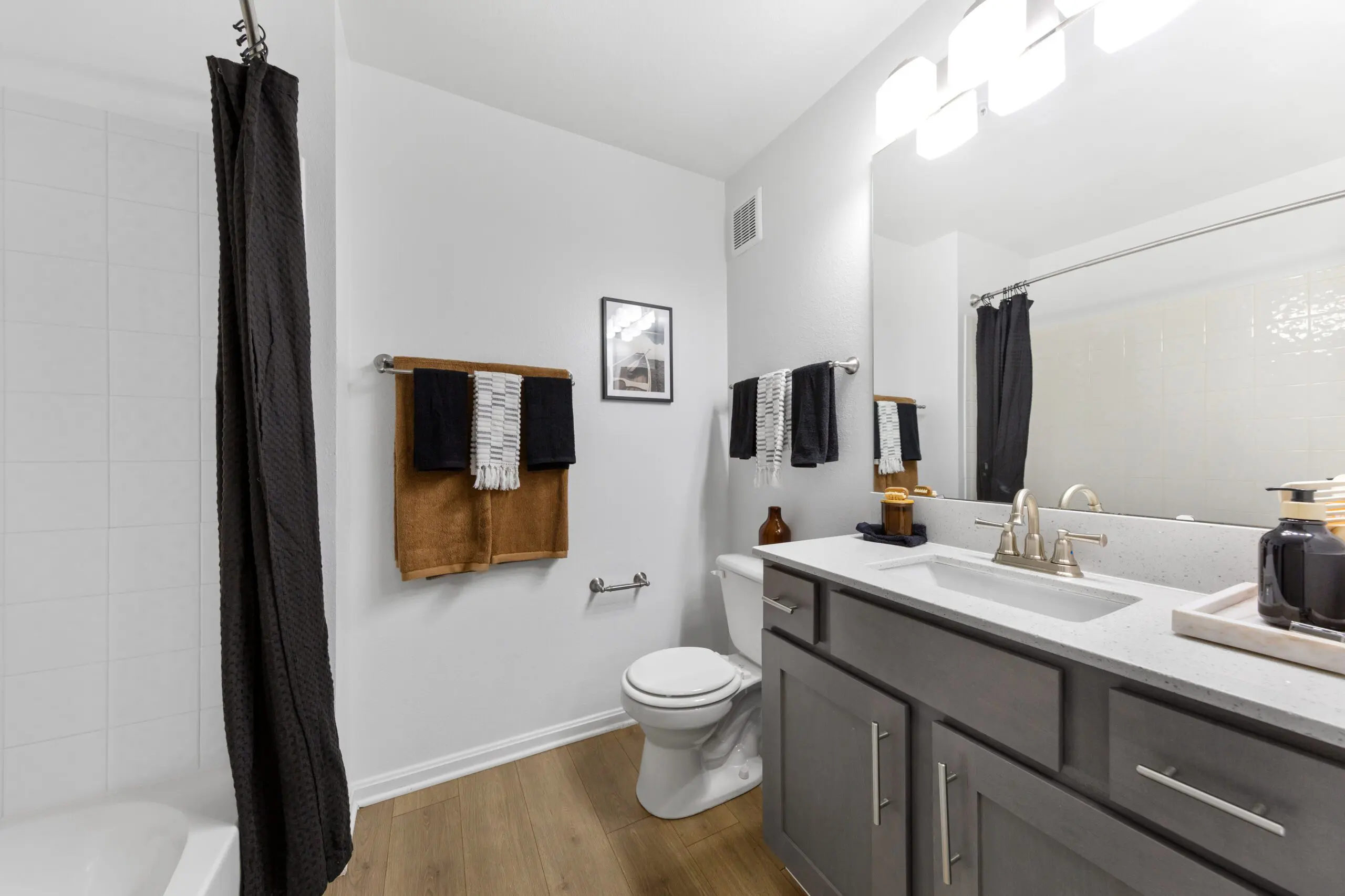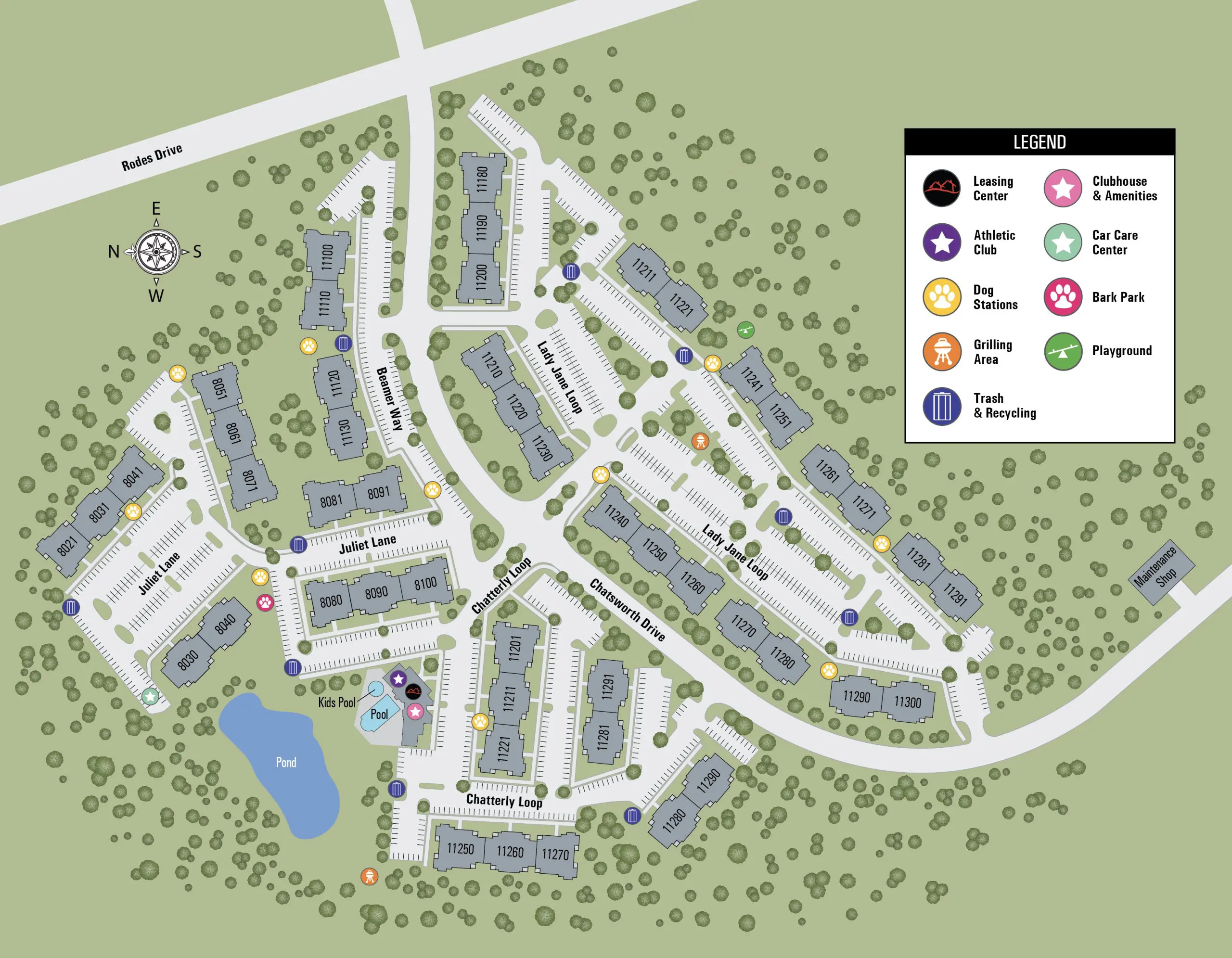 Our expansive one-, two- and three-bedroom apartment homes feature thoughtful finishes, private patios, a full-size washer and dryer, and more. Residents enjoy a wide range of amenities including a 24-hour athletic club, resort-style swimming pool, wading pool, business center, playground, bark park, and much more!